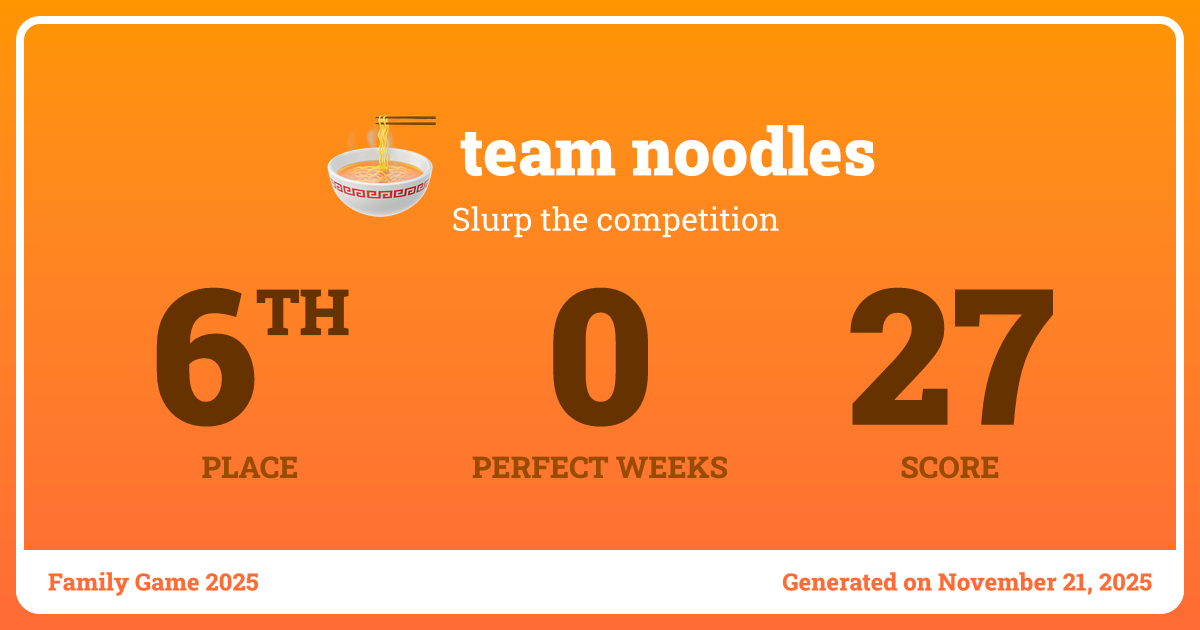 The following image was made entirely in Typst, compiled dynamically with data from a game my family and I play each year: